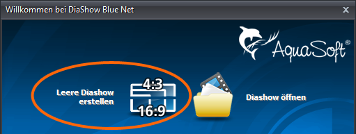 Nun rufen Sie die Software erneut auf und öffnen eine leere Diashow. Achten Sie darauf, das die leere Diashow das gleiche Seitenverhältnis hat, wie die schon geöffnete Diashow.