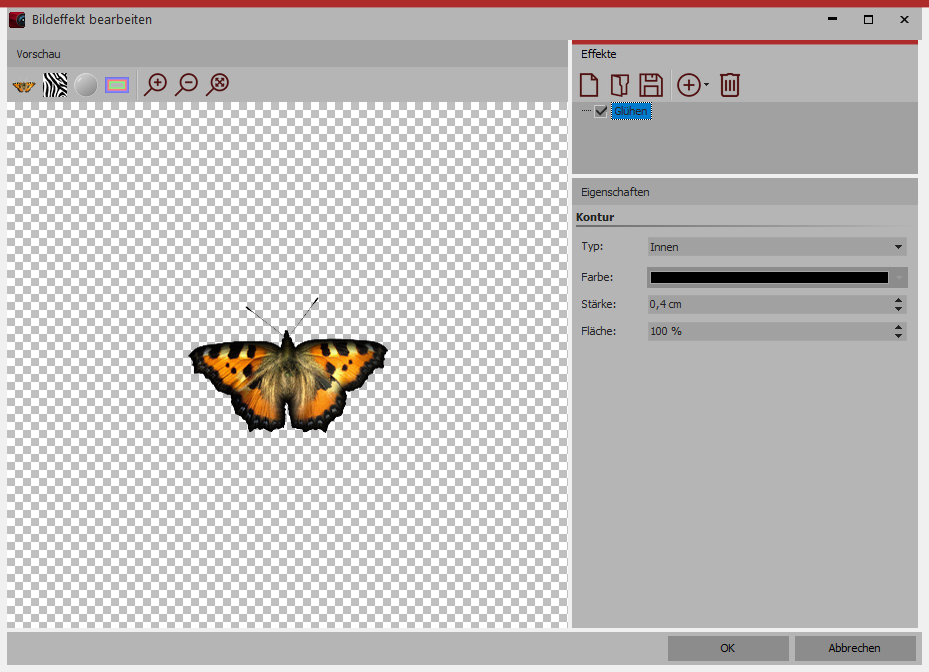 Passen Sie die Eigenschaften des Effektes durch Klick auf den Effektrahmen in der Timeline an.